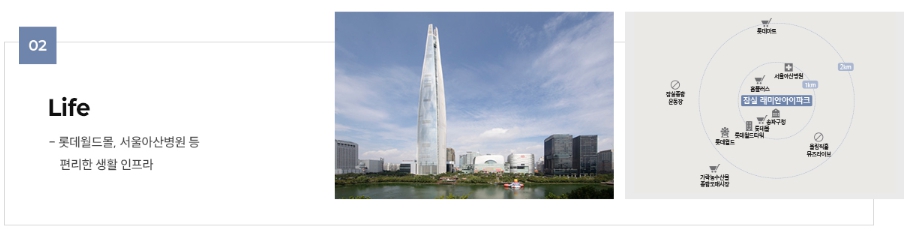 교육 환경도 우수하며, 대중교통 접근성도 뛰어나 잠실권 아파트 중에서도 큰 인기를 끌고 있습니다. 롯데월드, 롯데타워, 잠실종합운동장 등 다양한 생활 편의시설이 인접해 있어 잠실 지역 내 거주 선호도가 매우 높습니다.
