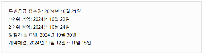 래미안 아이파크 청약 일정은 2024년 10월 21일 ~ 2024년 10월 24일 사이에 접수될 예정입니다. 당첨자 발표는 2024년 10월 30일에 진행되며, 계약 기간은 2024년 11월 12일 ~ 2024년 11월 15일로 잡혀 있습니다.