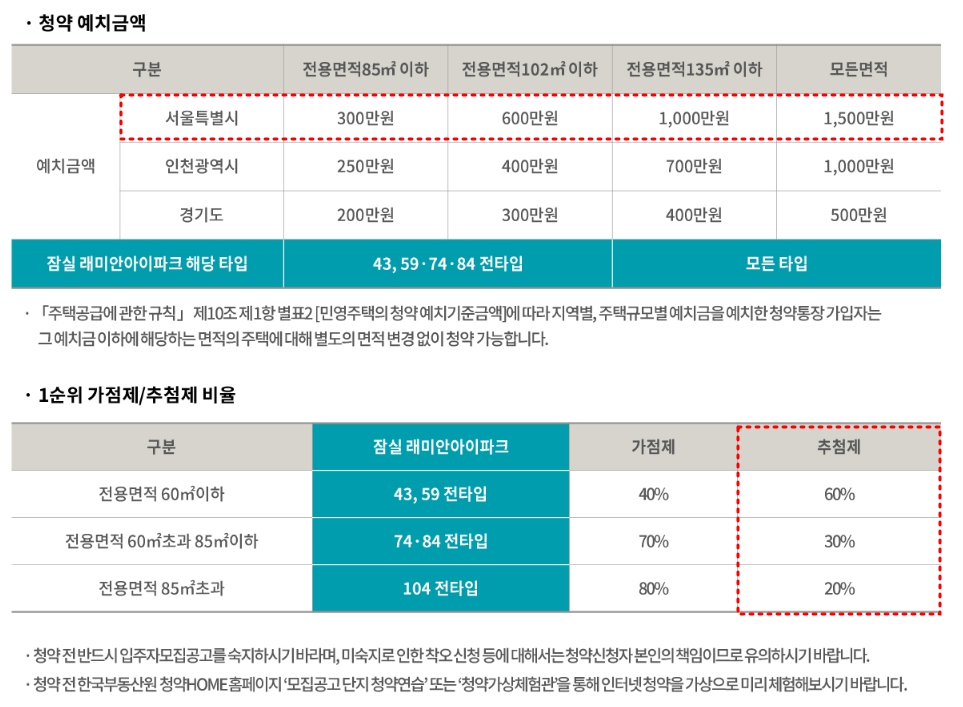 청약 시 주의사항은 잠실 래미안아이파크는 투기과열지구 및 청약과열지구로 지정된 지역이라는 것입니다. 따라서 청약 신청 시 다음과 같은 조건을 반드시 확인하세요.
