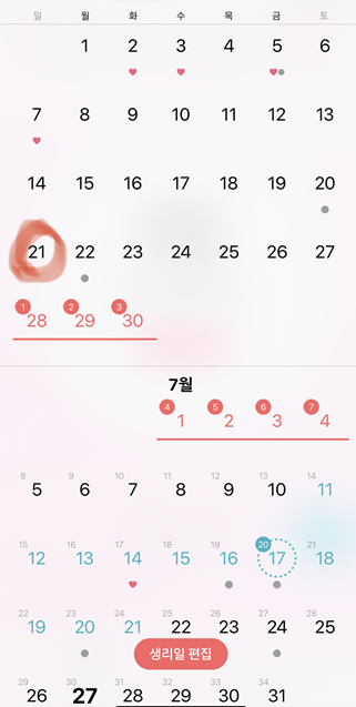 6월 생리가 끝나고 7월