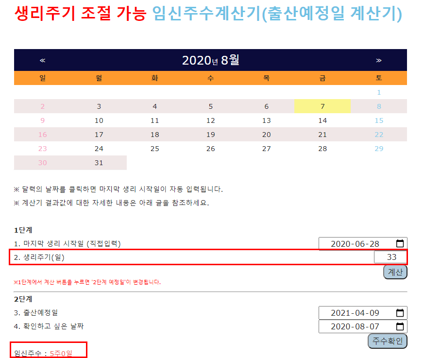제가 정말 유용하게 쓰고 있는 임신 주수 계산기 공유할게요.