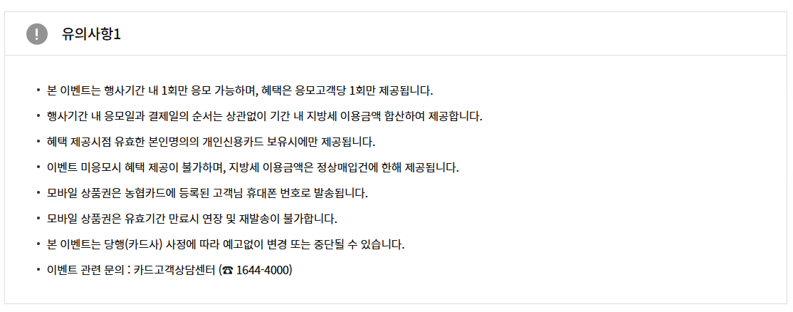 | NH농협카드 | O | O | 추첨 스타벅스 쿠폰, 무이자 2~3개월 |