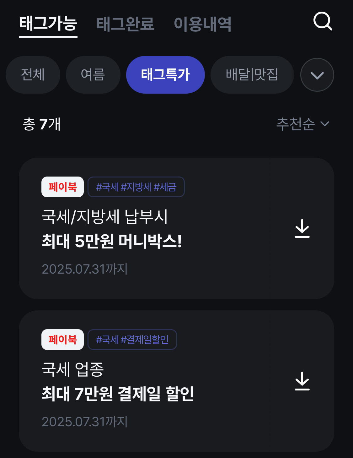 | 하나카드 | X | O | 지방세 납부 시 추첨을 통해 다양한 경품 지급 |