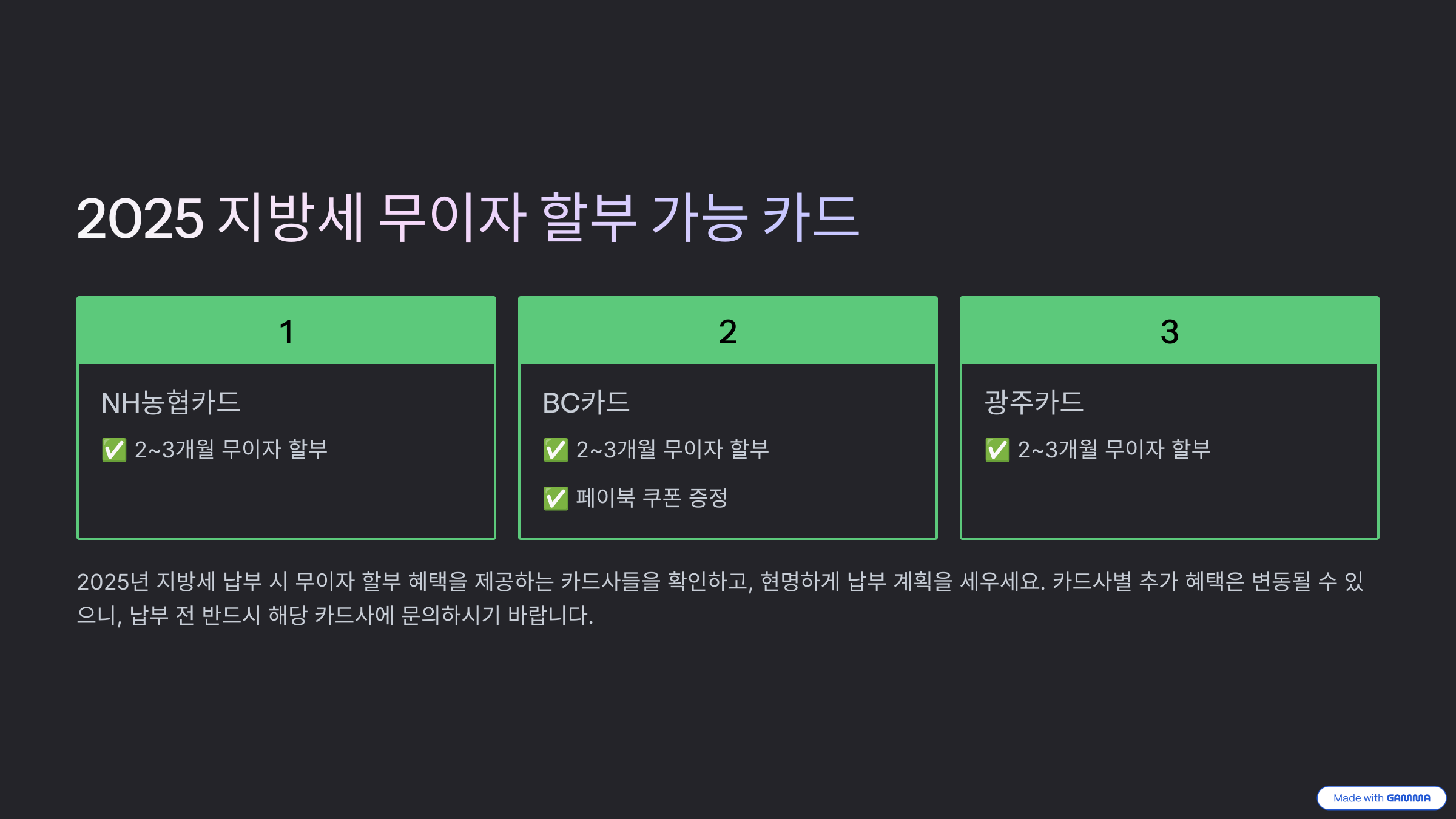재산세 카드 납부 시 일부 카드사에서는 무이자 할부나 포인트 적립 혜택을 제공하고 있습니다. 단, 수수료가 발생할 수 있으므로 확인 필수입니다.