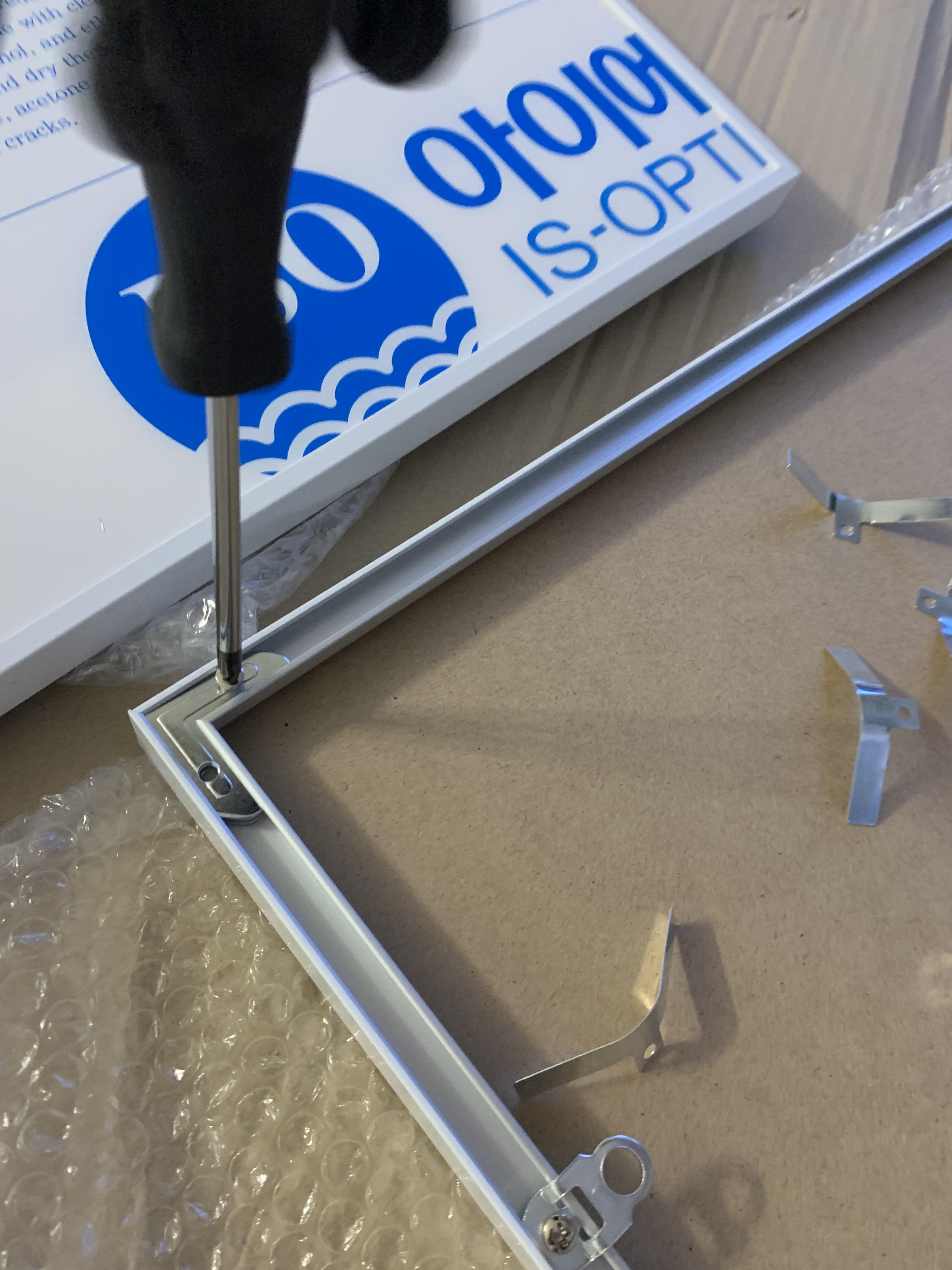 2. 액자의 상단부분(하단이어도 관계는 없습니다.)을 십자드라이버로 빼주세요.