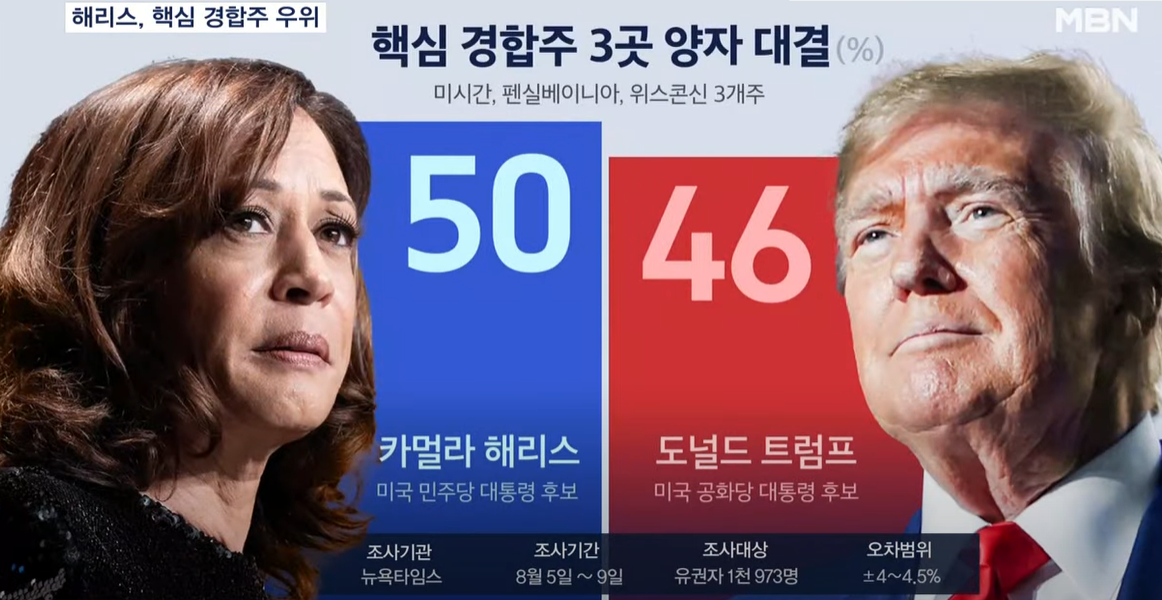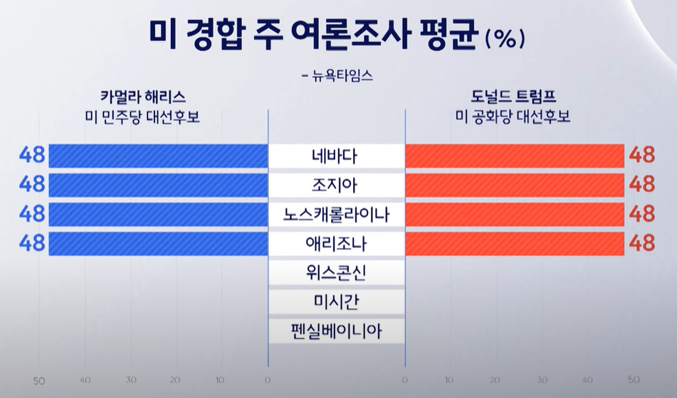 결론적으로 해리스와 트럼프의 경쟁은 여전히 매우 박빙이며, 선거 결과는 미국뿐만 아니라 한국을 포함한 글로벌 동맹국들에게도 상당한 영향을 미칠 것입니다. 두 후보 모두 토론에서 좋은 성적을 거두고 스윙 스테이트 유권자들을 설득하여 승리를 확보해야 합니다.