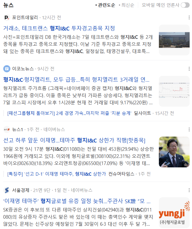 | 상지건설 | 11,720 | +29.93% | 16억 8,000만 | 사외이사 임무영, 이재명 캠프에 합류 |